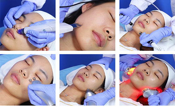 The combination of water dermabrasion and diamond dermabrasion allows for more effective exfoliation and deeper penetration into the skin to increase surface resurfacing for improved outcomes. For those looking to achieve desired aesthetic results, the Hydro Dermabrasion helps to reach multiple treatments to help meet their skin goals . The powerful vacuum suction also stimulates circulation in order to improve overall skin health as well as enhance product penetration . This machine is an all - in - one solution that adopts multiple treatments such as exfoliation, extraction,hydration and massage, which can be combined together or used separately based on individual's needs in order to achieve desired results.