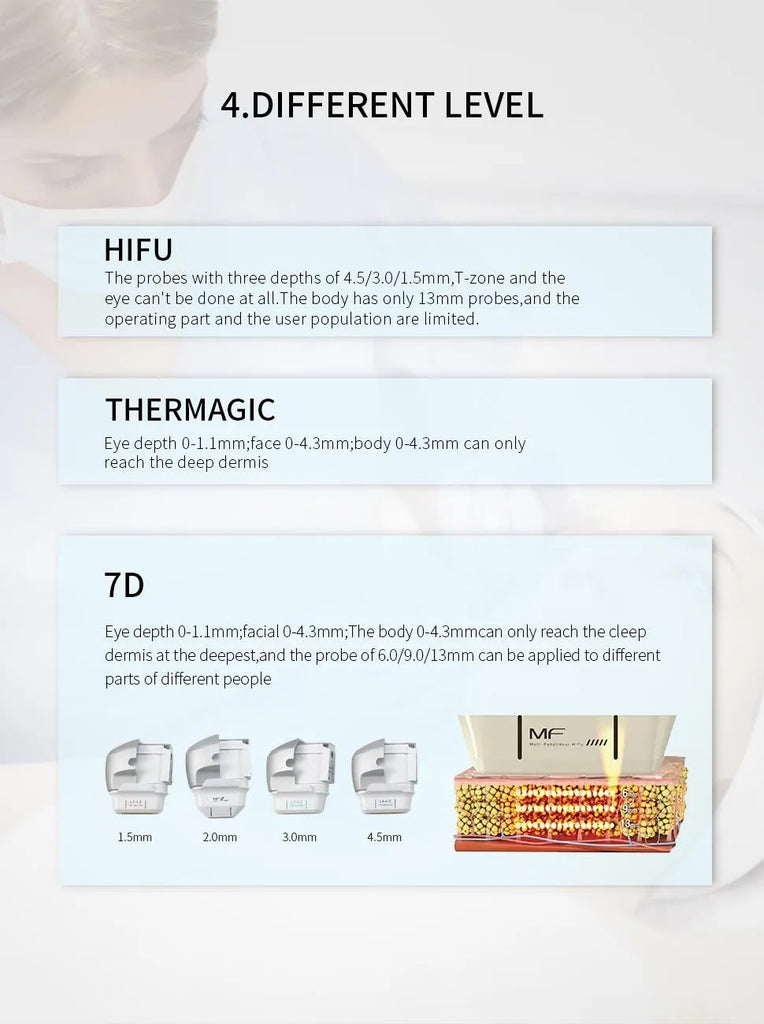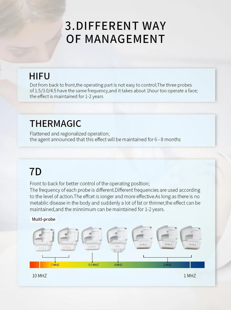 7. Face lift, skin tightening and fat dissolving can be done in one machine.