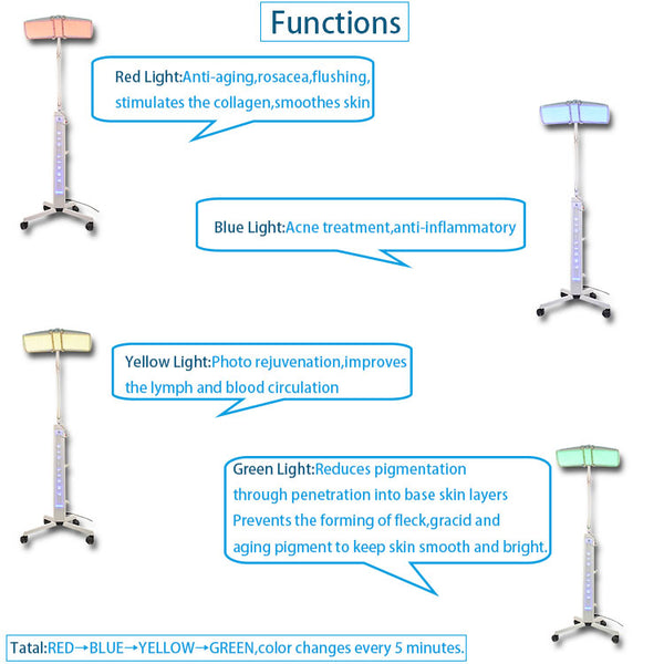 Red Light: Anti-aging, rosacea, flushing, stimulates the collagen, smoothes skin.