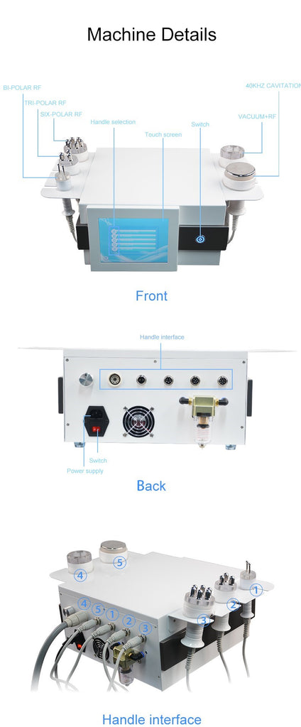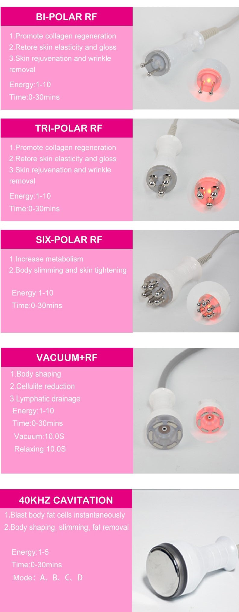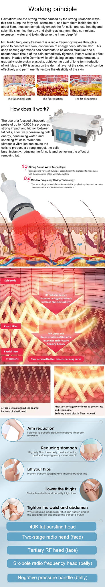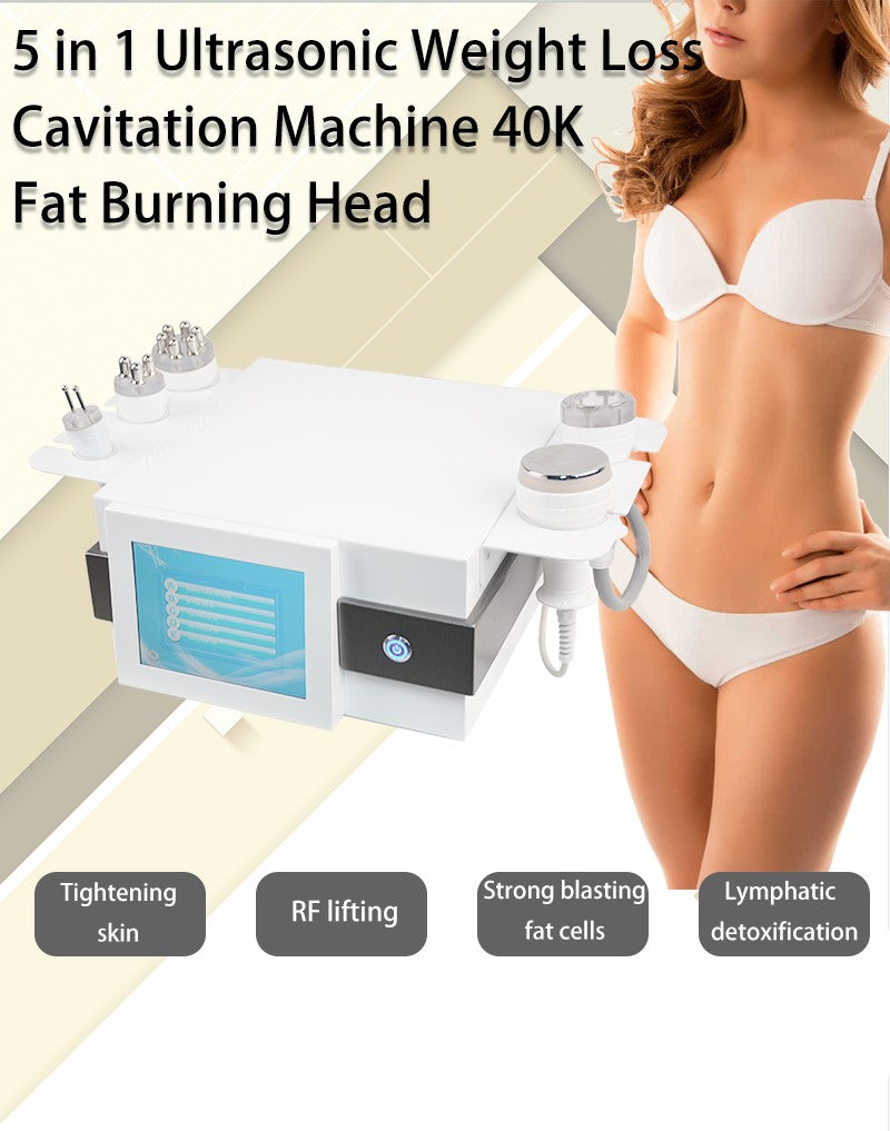 5 In 1 40K Ultrasonic Ultrasound Cavitation Therapy Device Machine With Laser RF Cavitation Head Cavitation Effect Instrument