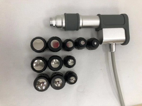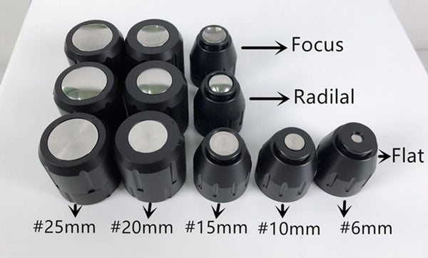 Pneumatic handle with 11pcs tips.( 5 pcs flat form, 3 pcs radial form, 3 pcs focus form)