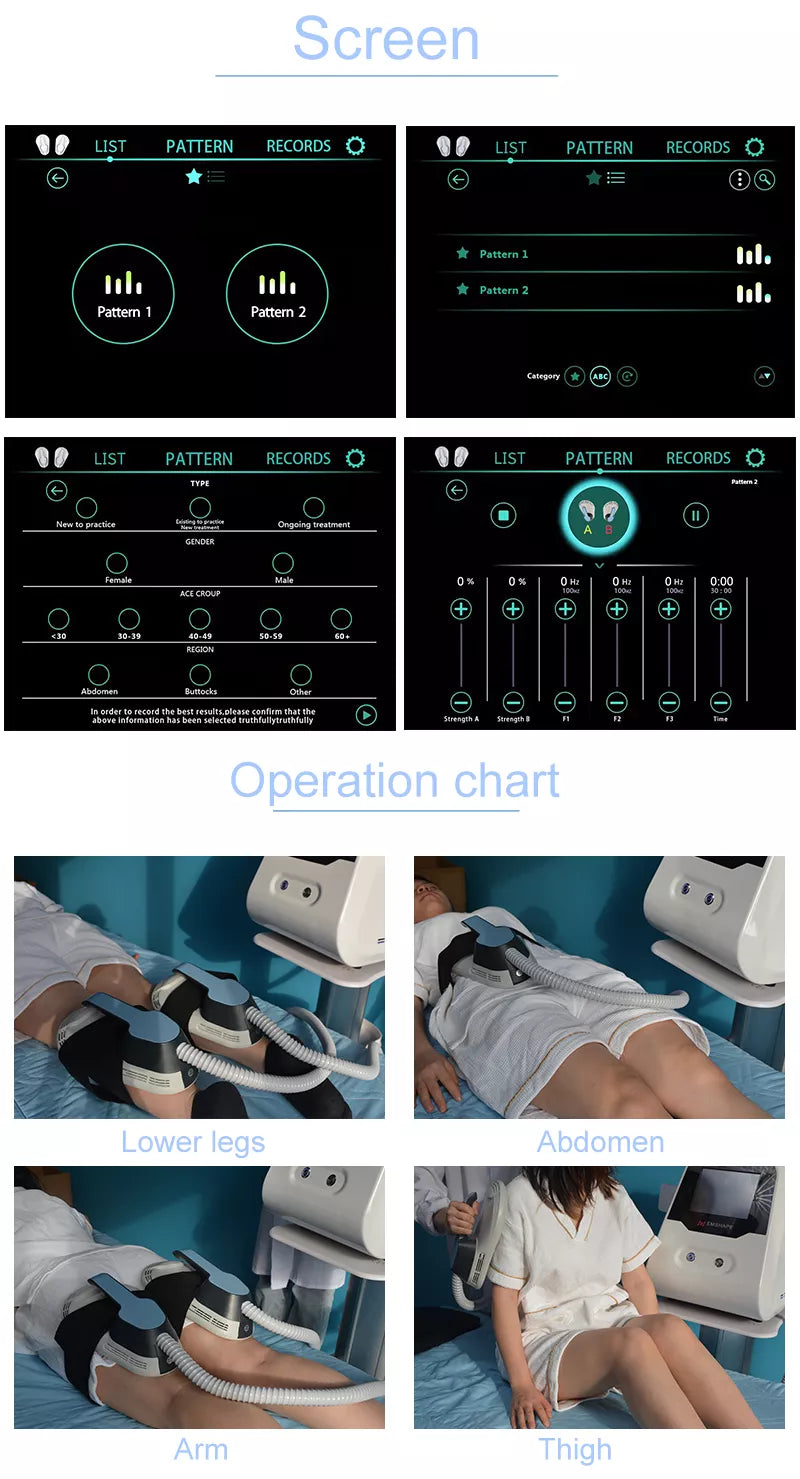 The slim beauty machine use focused electromagnetic field with safe intensity to pass through the body and interact with motor neurons. It’s designed for continuously stimulating and contracting the muscle, which is ideal for deeply reshaping the internal structure of the muscle. Having 2(two) applicators with higher intensity for non-invasive body contouring, so it not only achieves effect on burning fat, but also building muscle at the same time, which is a key to keep a toned and healthy physique.