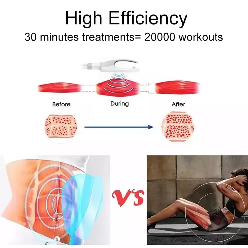 1. Good result —30 minutes treatment= 20000 workouts, increase 16% muscle and reduce