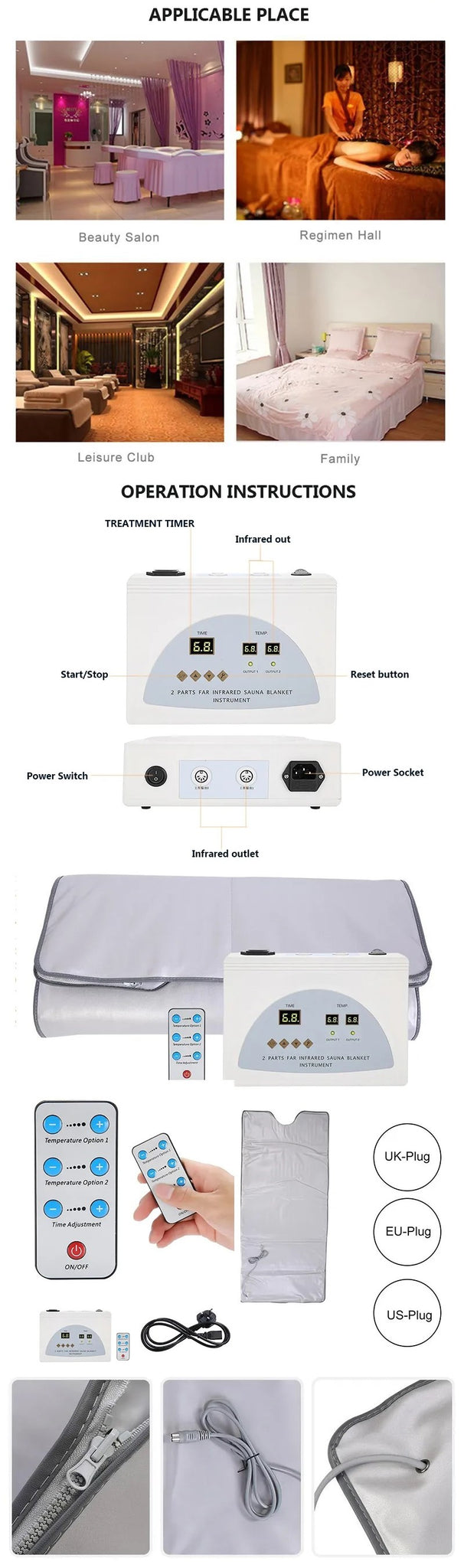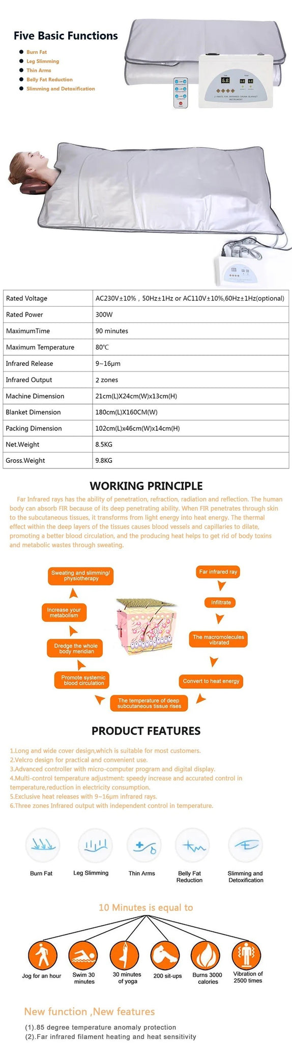 Infra Red Sauna Portable 2 Zone Sauna Infrared Slimming Hot Blanket Weight Loss Detox Manta Infrarrojos Heating Blankets For Spa