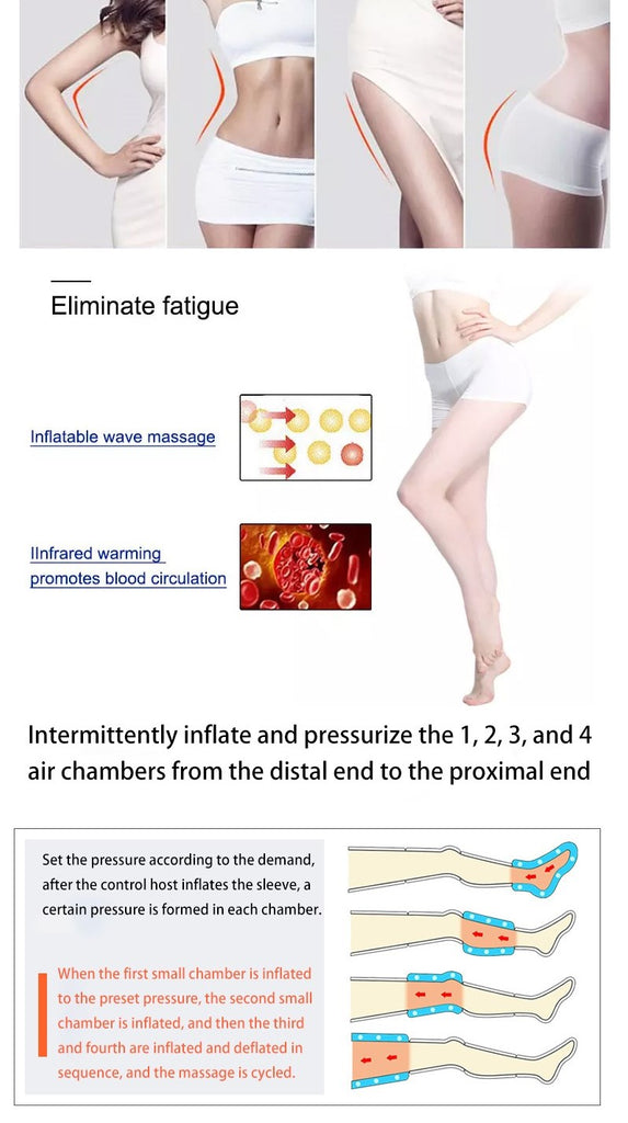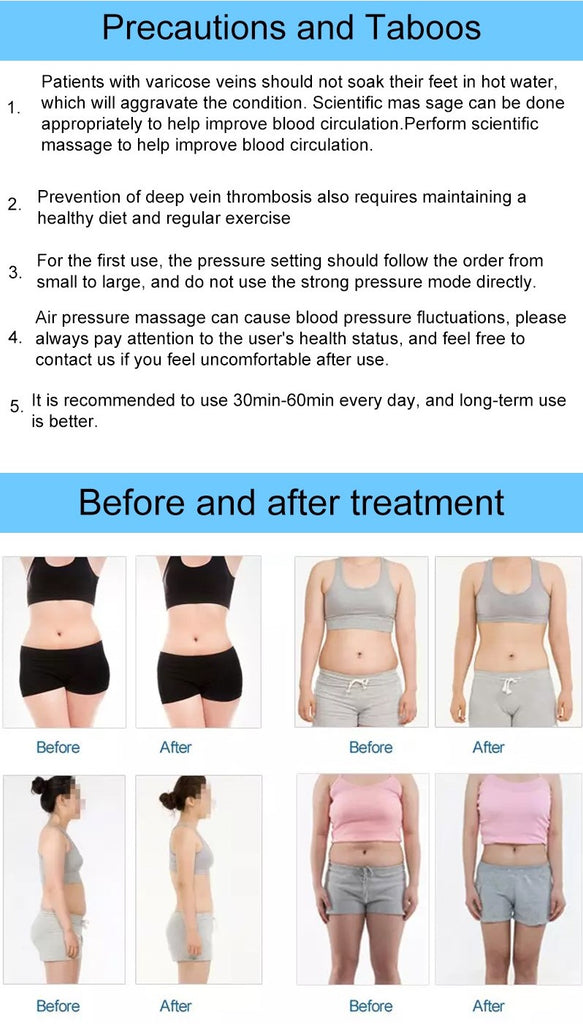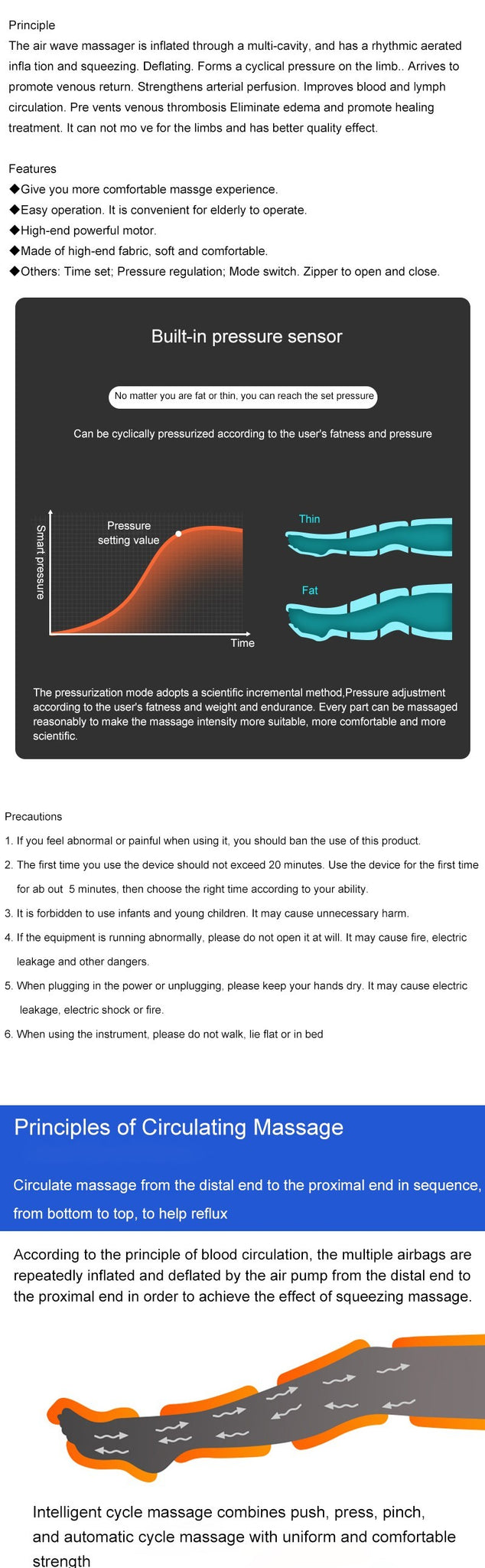 A: The machine is designed with adjustable pressure settings and 24 airbags, which comfortably adapt to different body sizes. And the foot part could fold up, this is the newest design, and our clients found it very comfortable.