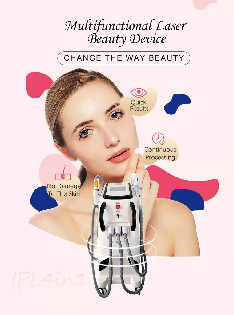Multifunction beauty machine 4 in 1 elight IPL OPT SHR RF ND Yag Laser Tattoo removal/hair removal machine