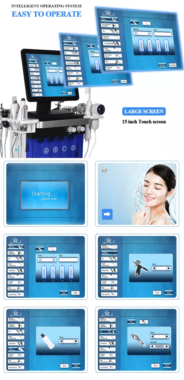 Multifunction Hydra Water Dermabrasion Facial Beauty Hydradermabrasion Ice BIO Diamond RF Ultrasound Technology Machine SPA800