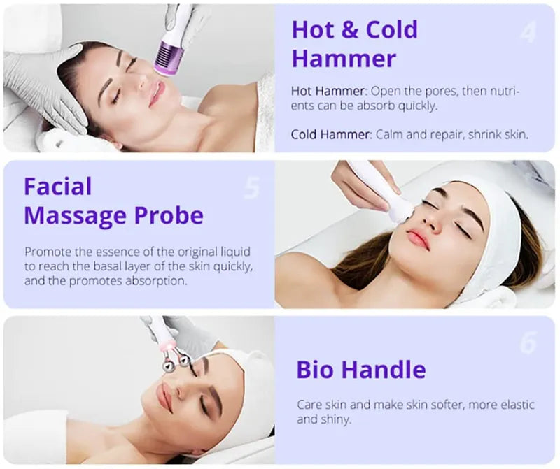 | Handles | Spray Handpiece, Ultrasound Handpiece, BIO Handpiece, Scrubber, Hydro Probe, Hot & Cold Hammer |
