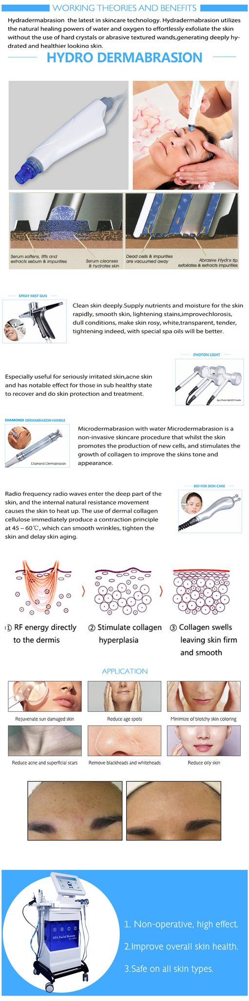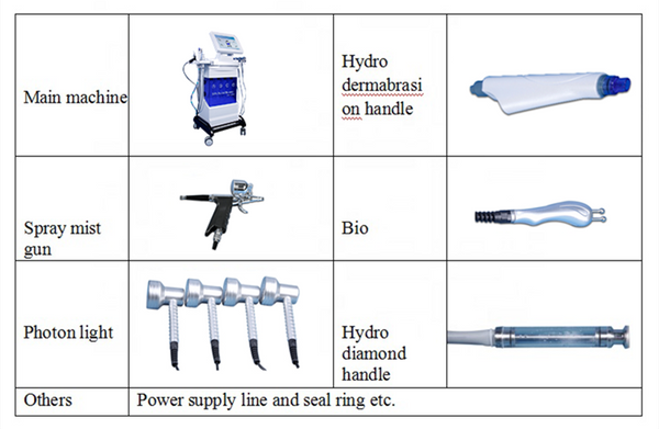 Hydro dermabrasion with 8 tips Photon light with 4 handles Spray mist gun 1 piece Biopolar |