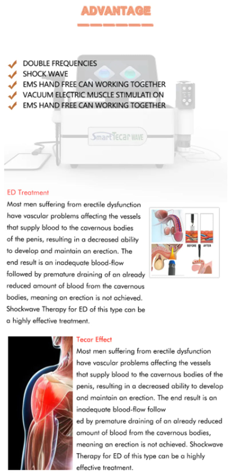 Portable Ret CET Shockwave Diathermy Machine Shockwave Shock Smart Wave Tecar Therapy Technology Physiotherapy Equipment For ED