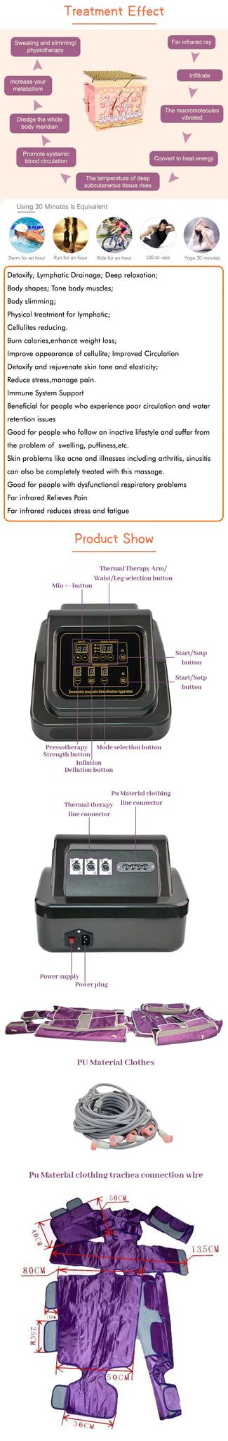 Professional press therapy device lymphatic drainage infrared slimming presoterapia pressotherapy machine SA08