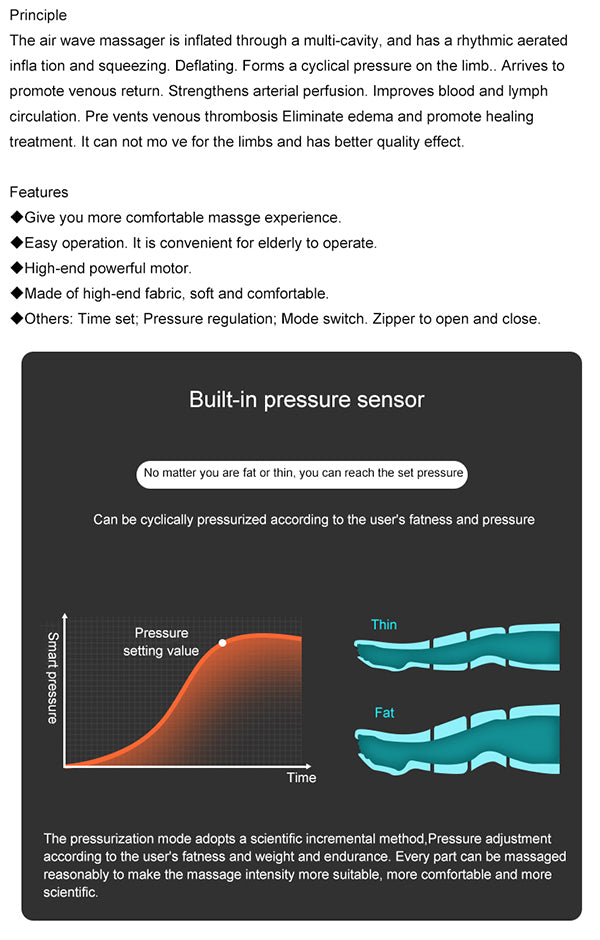 | Function | Lymphatic Drainage, Air Pressotherapy, Pressotherapie, Massage |