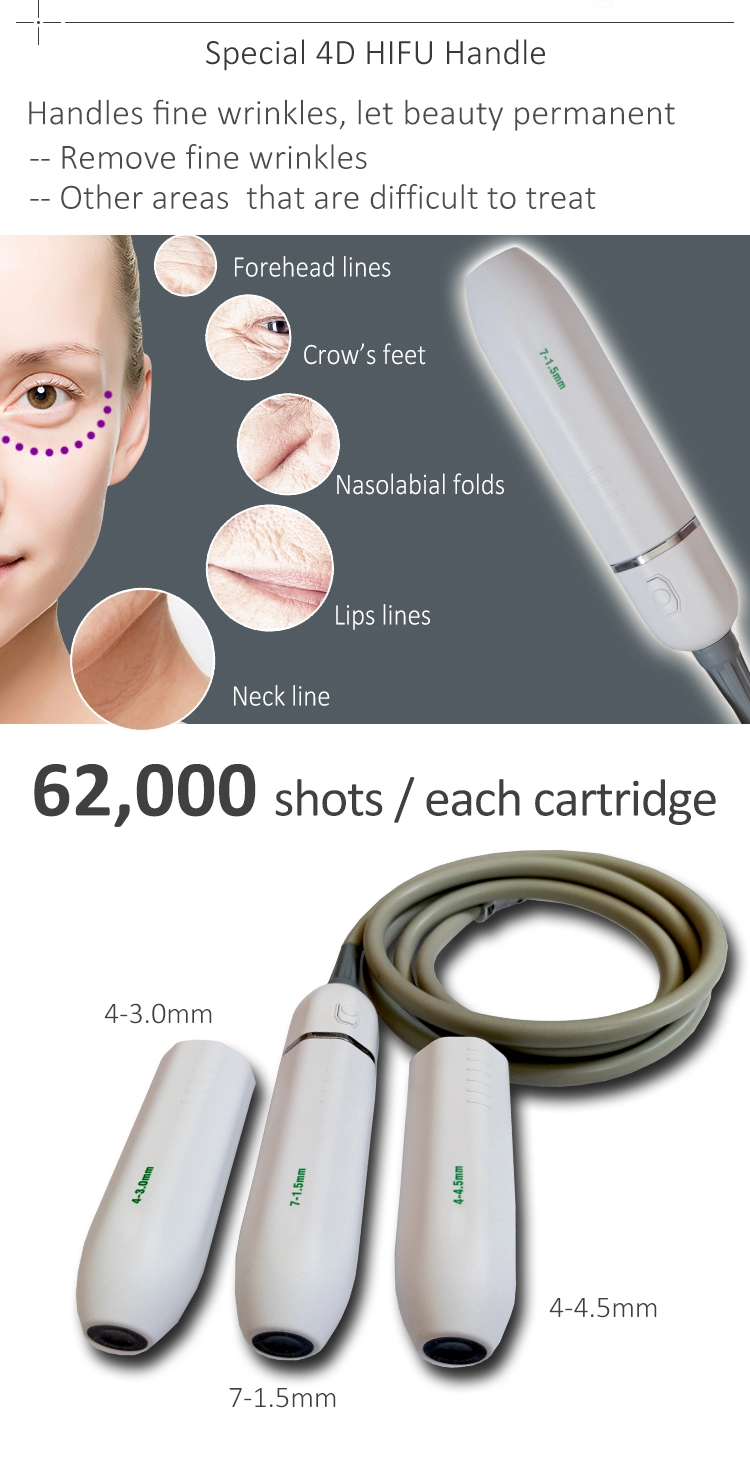 | 4D HIFU Cartridges | 1.5mm, 3.0mm, 4.5mm, 6.0mm, 8.0mm, 10mm, 13mm, 16mm |